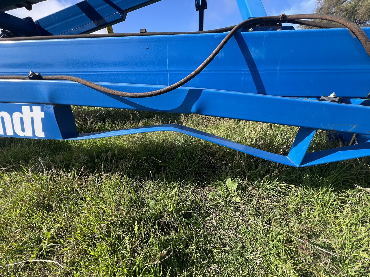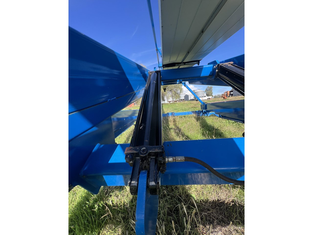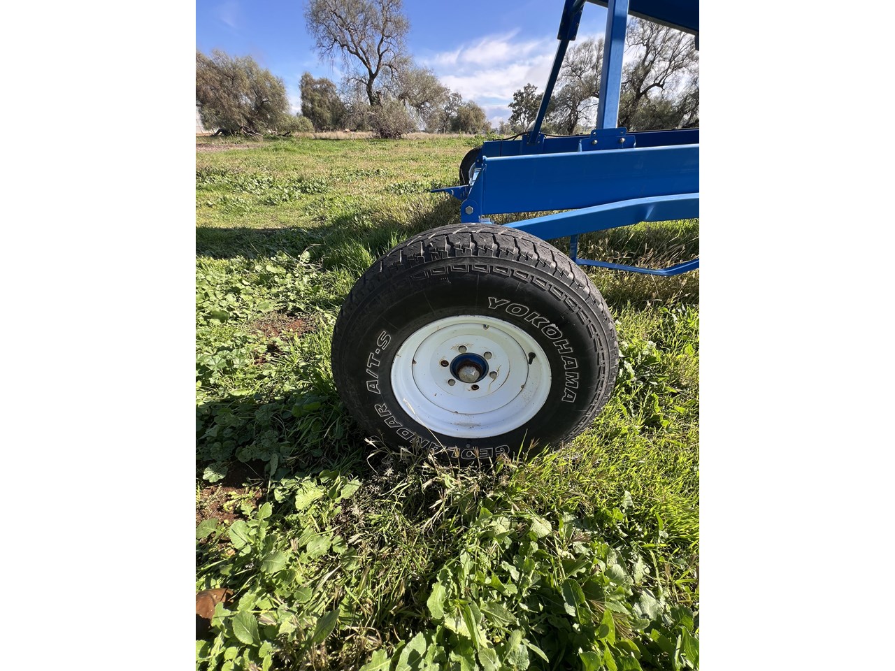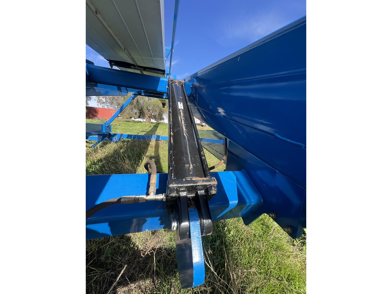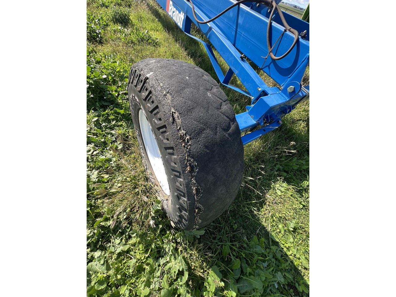 Client bought this unit in 2021, used if for that season and has not used it since. The belt is in good order. all bearings and adjustment arms are also in good order, one tyre is stuffed the other is ok. There is some minor damage on the support arm near tyres as per picture but nothing detrimental to the unit. Big Capacity Conveyor at a good price. with a big reach and large TPH this unit will suit a larger grower and a grain facility looking to increase capacity and efficiency.