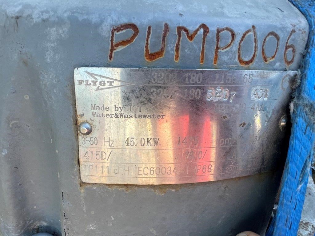 Twin Flygt 3202 180 submersible pumps