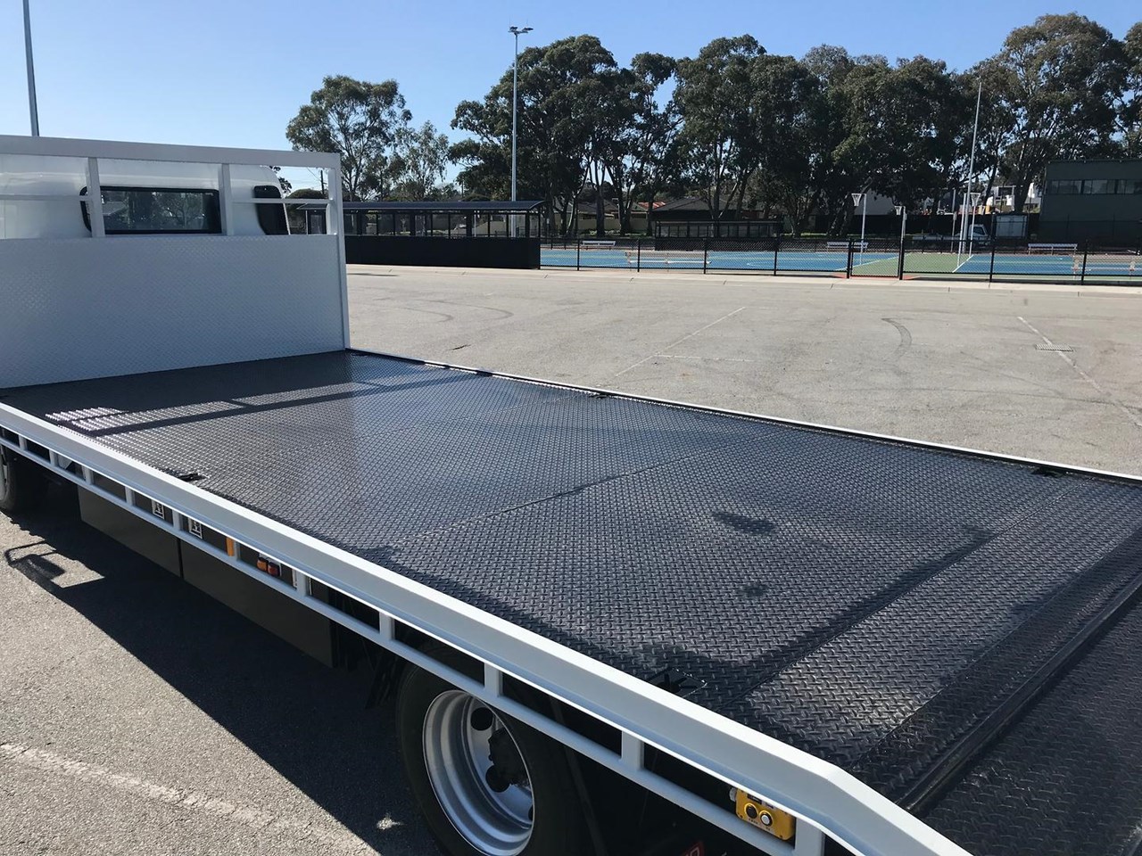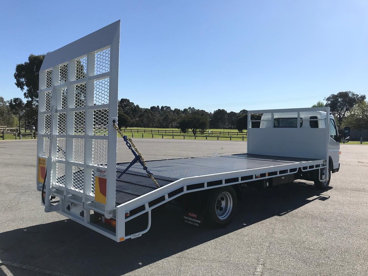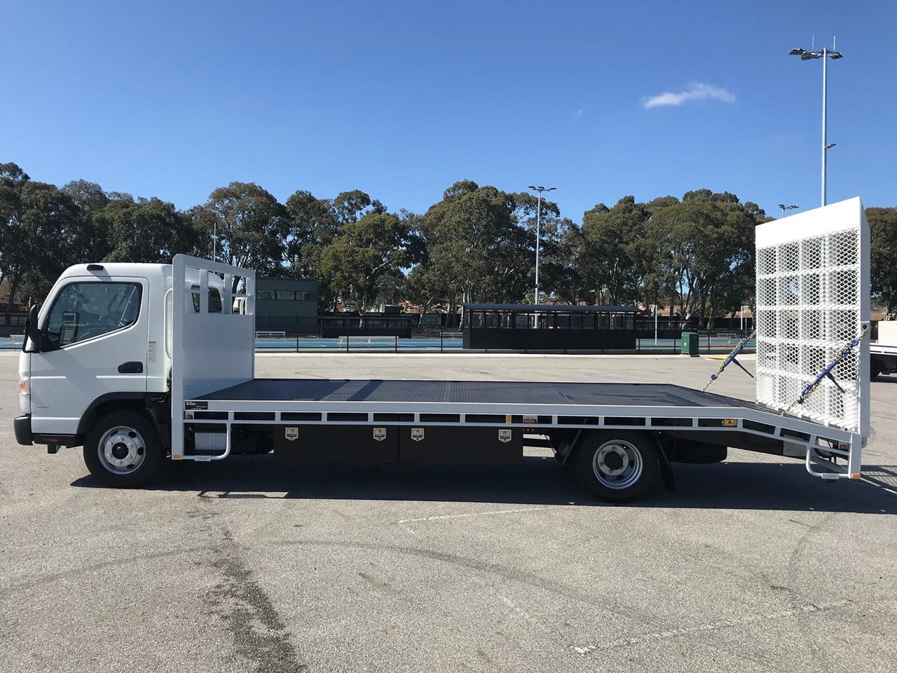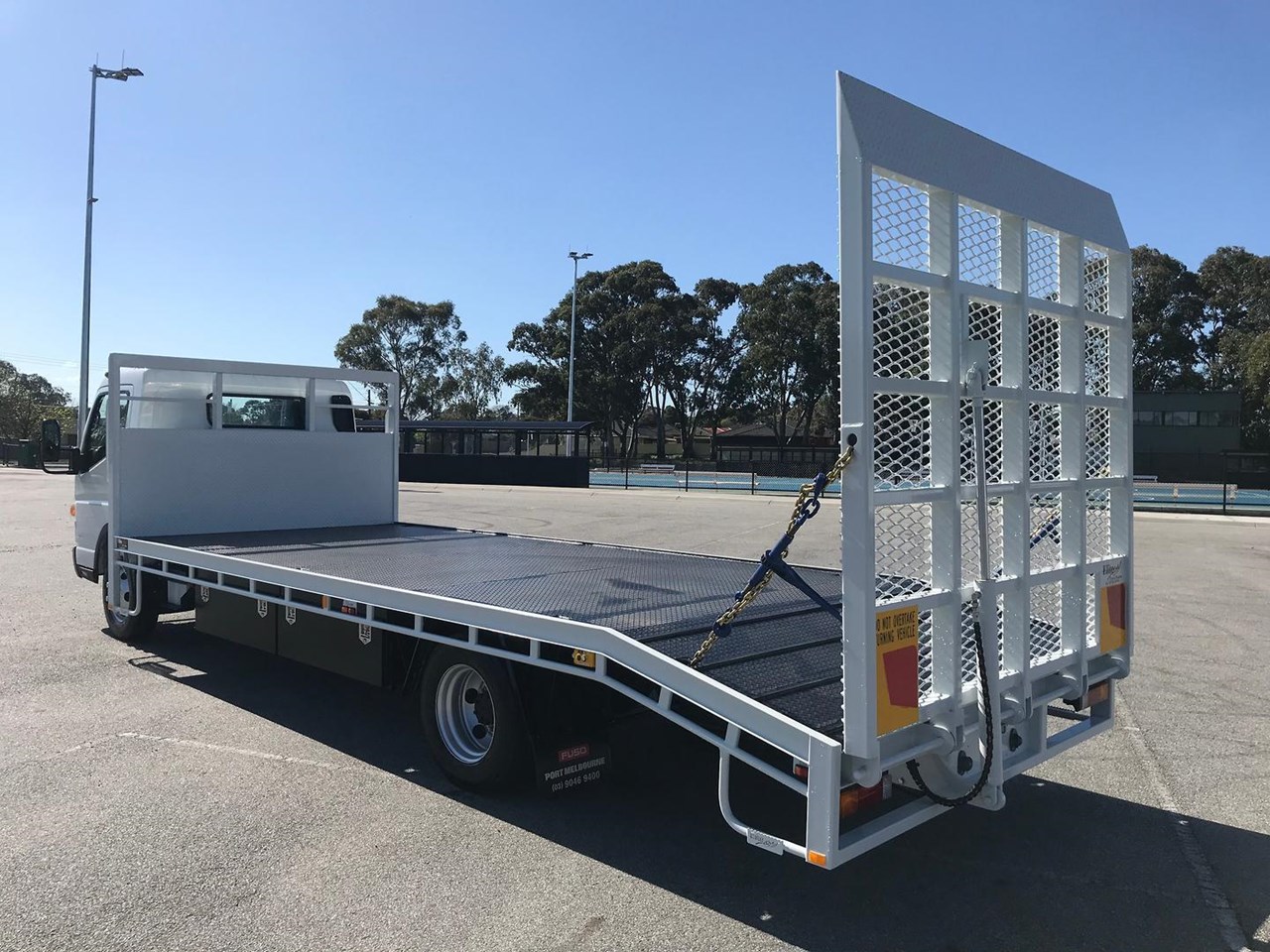 The Beavertail body is 6400mm long x 2440mm wide 3mm checker plate floor with 6x keyways in the floor and one-piece hydraulic mesh rear ramp. You have the option of choosing either a 4495kgs GVM Car license or a 8000kg GVM light truck license. The factory standard warranty for this truck is 5 years or 200,000 kms, which is a testament to its quality and durability.