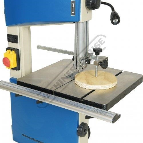This bandsaw has a welded steel frame designed to keep your machine from twisting whilst cutting at 245 x 145mm capacity. It has a generously 360 x 320mm cast iron table with an aluminium rip fence and mitre guide to help you cut straight or angles to the required size. The table mounting trunnions are adjustable to get your tale to tilt from 90 to 45 degrees and has a quick action locking lever. This machine also has its own LED light that is mounted to a flexible arm so the light can be adjusted direct on the cutting line no matter what timber size you are cutting.