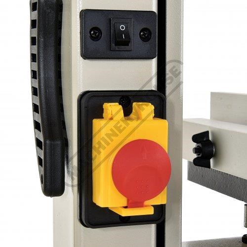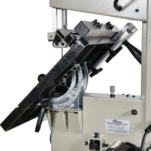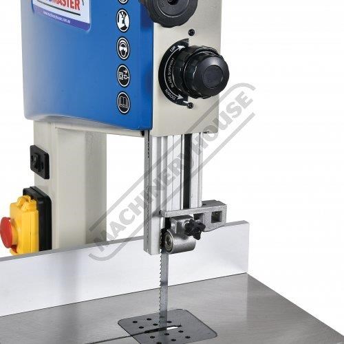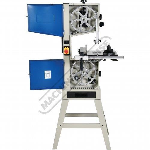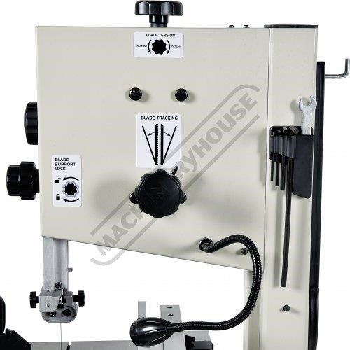 This bandsaw has a welded steel frame designed to keep your machine from twisting whilst cutting at 245 x 145mm capacity. It has a generously 360 x 320mm cast iron table with an aluminium rip fence and mitre guide to help you cut straight or angles to the required size. The table mounting trunnions are adjustable to get your tale to tilt from 90 to 45 degrees and has a quick action locking lever. This machine also has its own LED light that is mounted to a flexible arm so the light can be adjusted direct on the cutting line no matter what timber size you are cutting.
