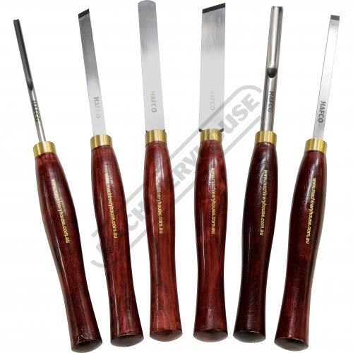 Hafco CHS6P HSS Professional Turning Tool Set. These sets offer increased value for money over individually bought chisels and comprise the most popular and useful chisels, making them ideal choices for the vast majority of wood turners.