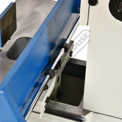 A gas strut in the rear column enables smooth headstock travel and allows ``parking`` at any position. The large cast iron table includes a tall rear fence and an easily adjustable depth stop for consistent accuracy. Designed for busy workshops, this reliable machine delivers years of precise, trouble-free performance.