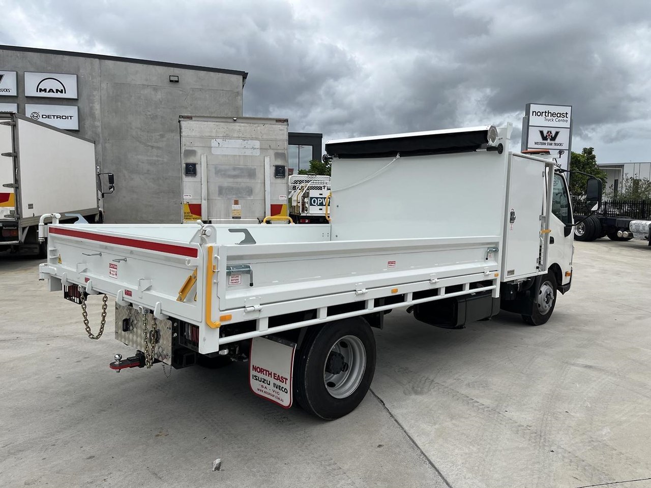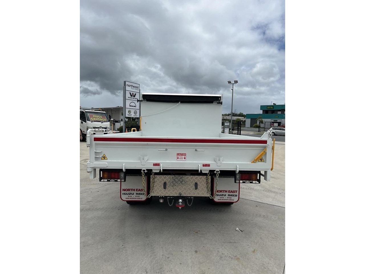 This is a brand-new build by Northeast Engineering and ready to roll. Fitted with Service body, Tipper and full 2400 storage cabinets as well as signage storage in front. .