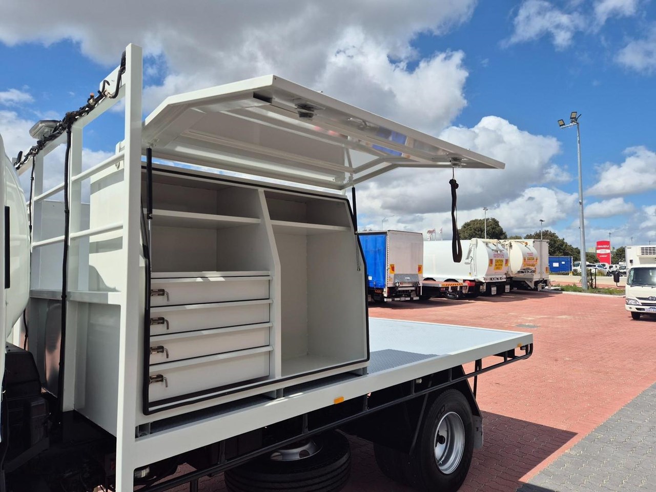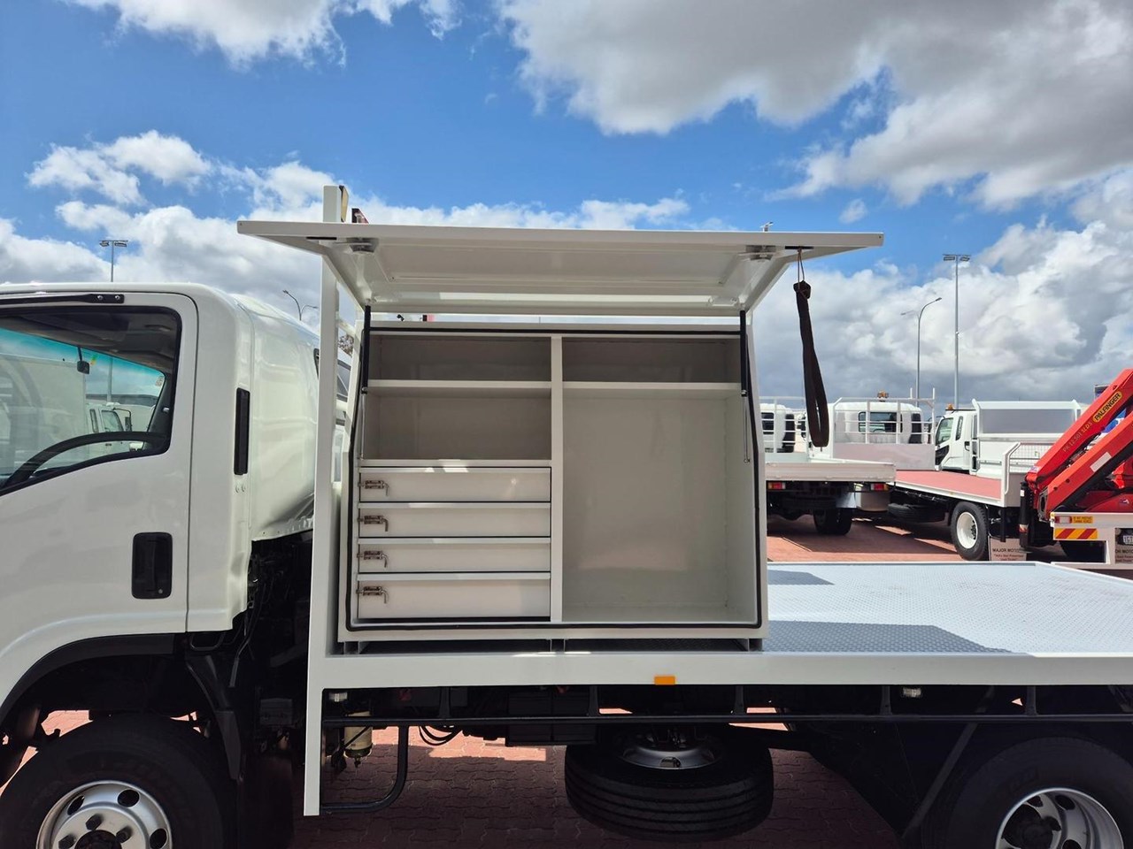 One of our Bulletproof Isuzu NPS75's, complete with the Massive 5.2 Litre Turbo/Diesel Powerplant fitted with a 4.1m x 2.4m Flat Steel Tray, UHF Radio, Hi Lights, Amber Beacon, 5 Speed Manual Transmission, Drivers Suspension Seat, Iso Switch, Anderson Plug, Towbar and Rust Proofed!