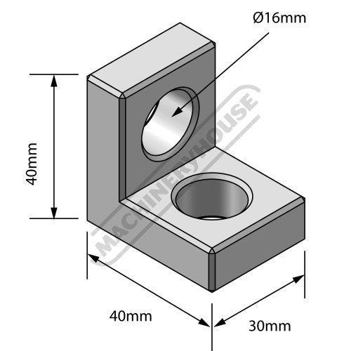 Right Angle Bracket / Stop WT16-AB443 40 x 40 x 30mm Suits Ø16mm Welding Tables Holes