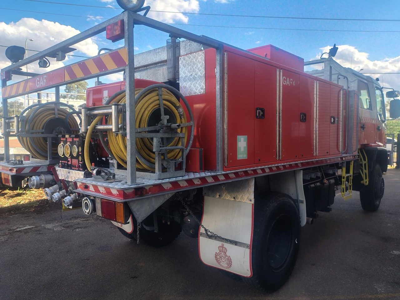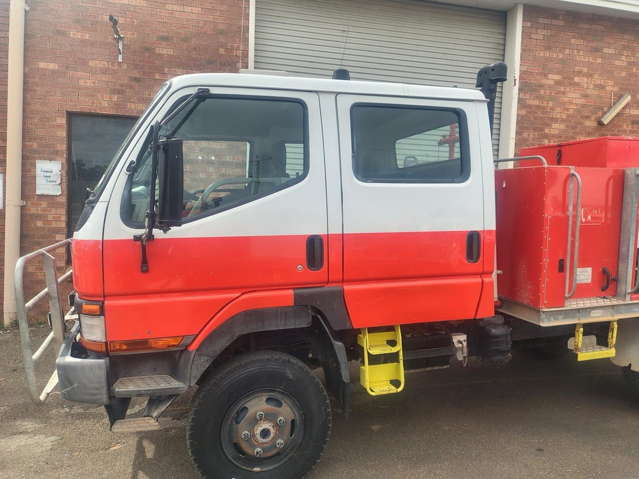 1999 Mitsubishi Canter 500/600 4x4 Crew Cab FireTruck, direct from government, fully equipped fire truck, galvanised water tank, diesel pump with Gaam pumpset with foam and crew protection. Air conditioned, currently six seats with a 7th seat available. Also available as a tray top truck. Also available 2007 Mitsubishi Canter 4x4 Firetruck, and a 2003 Canter 4x4 Dualcab Firetruck, both low km and factory turbo