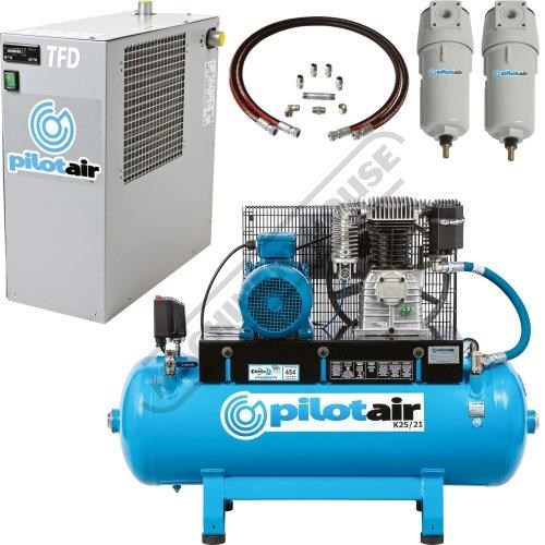 PILOT AIR COMPRESSORS K25/21 Industrial Pilot Air Compressor & TFD-6 Refrigerated Air Dryer Package Deal 150 Litre / 5.5hp 20.5cfm / 581lpm Piston Displacement