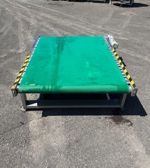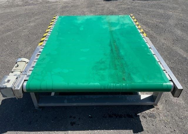 Flat belt food grade conveyor. 0.75kw 30 rpm. Stainless steel rollers. 1400mm wide x 1950mm long.