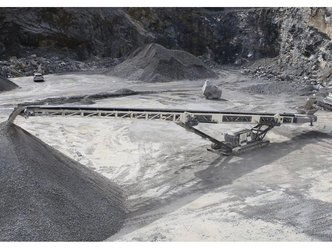 The conveyor can cope with all applications, from light duty screened material, through to jaw applications. The conveyor is 100ft long and still retains the ability to be transported worldwide in a 40ft container.
