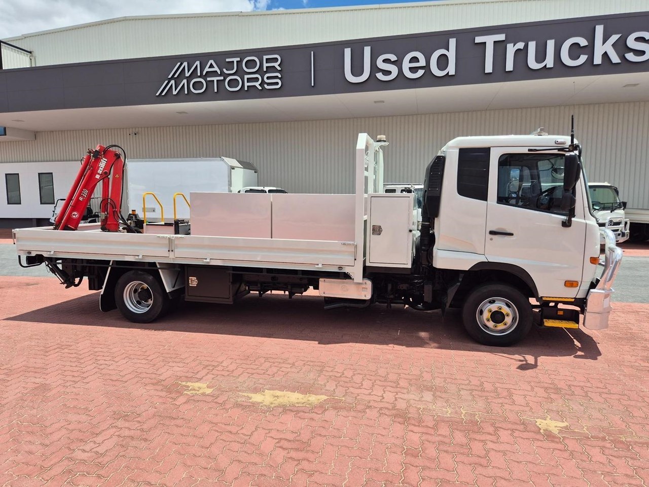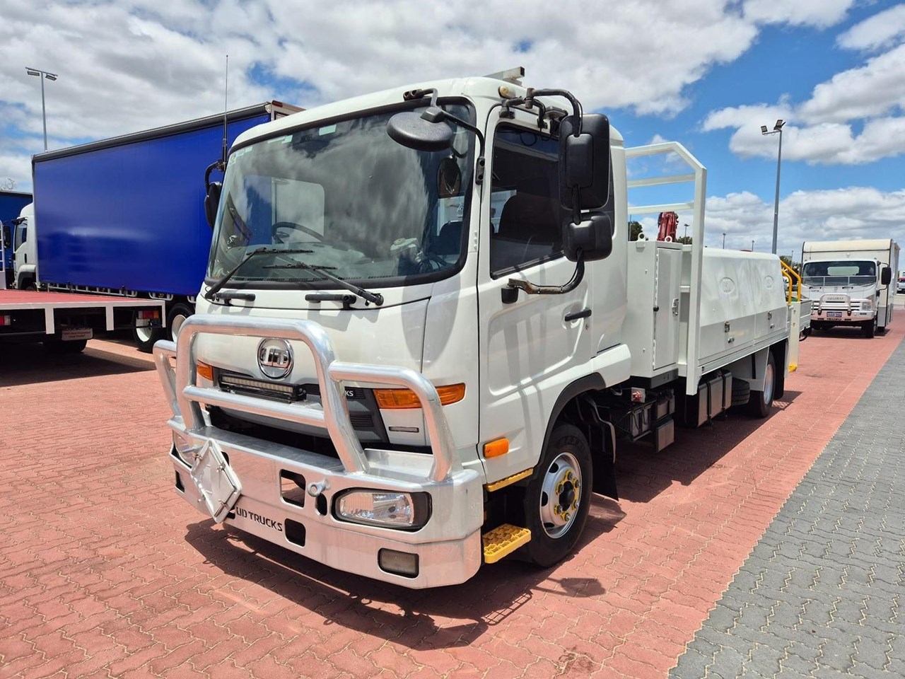 Just a lovely UD MK11-250 AUTO Tray with a Rear Tray mount Maxiflit 330 Crane, Bullbar, Towbar, 5m Steel Drop Side Tray with Rear Walk up Step, Reverse Camera, Dual Custom Built Tray Mounted Tool Boxes, etc, etc.....