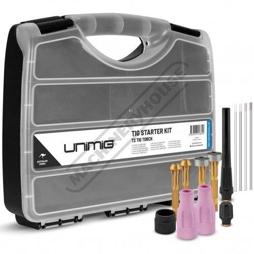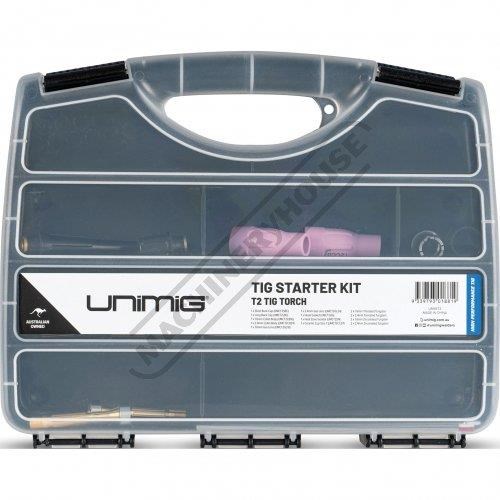 UNIMIG WELDERS UMSKT3 T3 Tig Torch Consumable Pack Suit T3 Tig Torch Includes 1.6mm & 2.4mm electrodes & Collet Bodies, Gas Lenses, Head Gasket, Heat Isolator, Ceramic Cups, Short & Long Back Caps