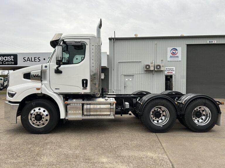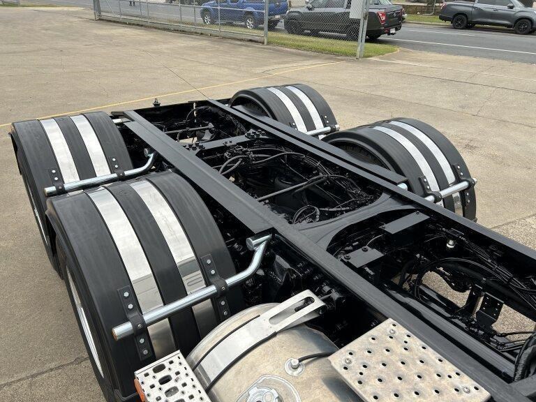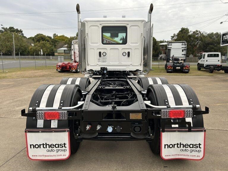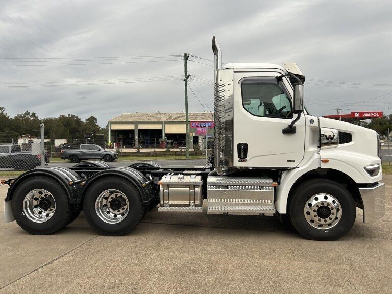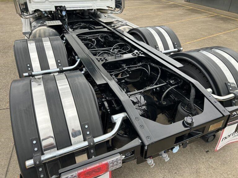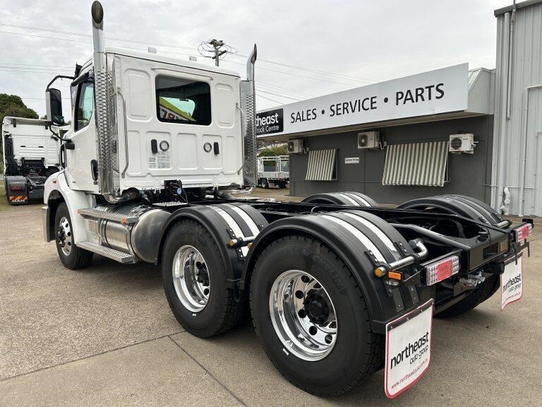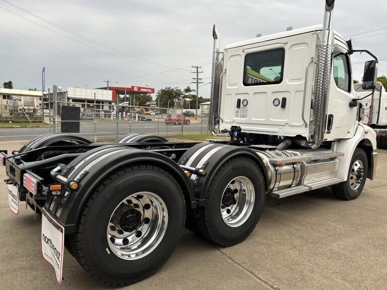 47X Prime mover Day cab, DD13, 525hp @ 1850lb/ft Torque, Roadranger 18 speed transmission, Meritor 46-160 GP diffs with cross locks, 529lts of fuel, Jost fixed turntable, alloy walk plate, plastic guards & UHF radio