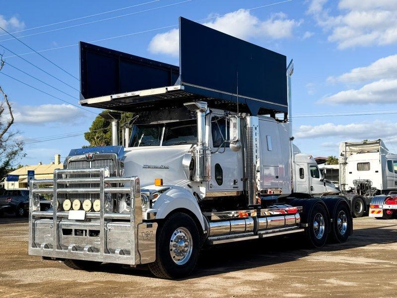 Low kilometre Western Star 4900 with DD15 Detroit power, full sleeper cab setup, and heavy-duty B-Double/Road Train rating.