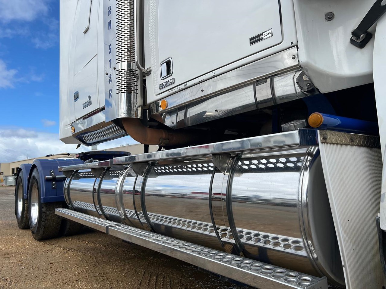Detroit DD15 Engine @ 560hp, New Engine Fitted 2022, Balance Due of Detroit Major Component Warranty to Nov. 2027 (Subject to Kms, Fuel Burn & Hours), 18 Speed Manual (RTLO20918B) Gearbox, Meritor RT-46160 Rear Axles on Airliner AL46 Airbag Suspension, Alloy Wheels with Super Singles to the Steer, Plastic Circle Guards, 2" Fixed Jost QRTT, Quad Alloy Fuel tanks, Alloy FUPS Bull Bar, 54" Stratosphere Sleeper with Ice pack Bunk Cooler, Very Tidy Truck with 106 Tonne B Double/Road Train GCM.