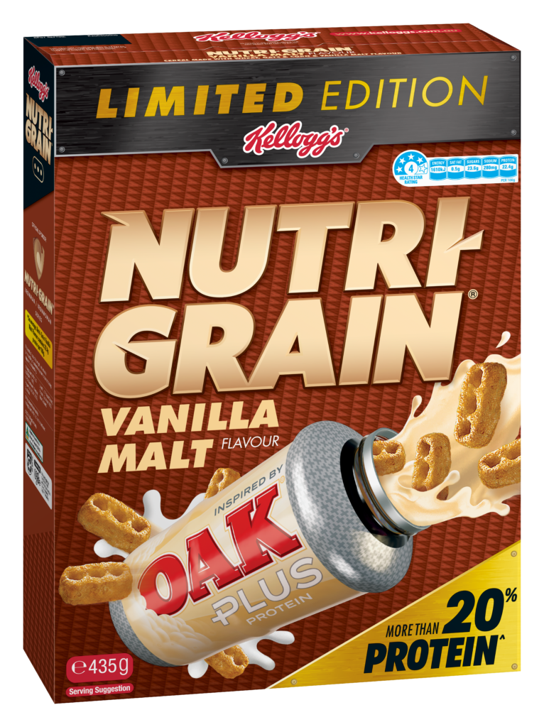Australian cereal brand Nutri-Grain has released a new Oak Plus Vanilla Malt breakfast cereal in collaboration with Oak Milk.